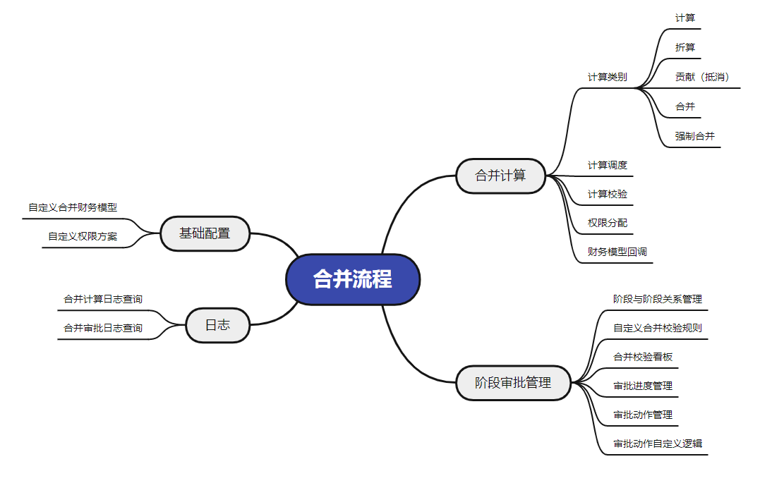 在合并场景中,企业会对合并流程进行严格的管控,如合并流程初始化,查看合并过程中各阶段(如主表阶段或附表阶段)的数据状态,同时会发起和操作数据流程并进行相关的计算。【合并流程】组件主要实现了合并领域中的计算调度、动作权限、审批管理,同时对合并流程做了可视化工作台,确保合并后的流程能够高效、协调地运行,并达到预期的目标。