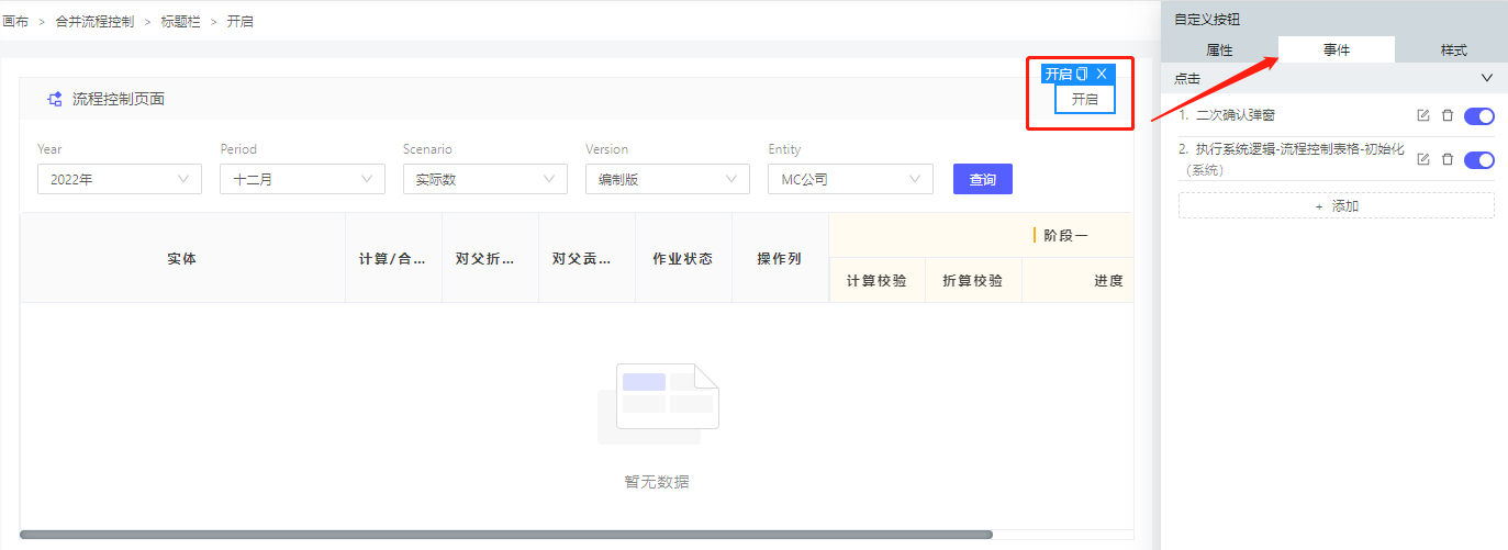 UX合并流程控件继承了UX通用控件的灵活属性,可以在按钮上实现添加事件等操作;