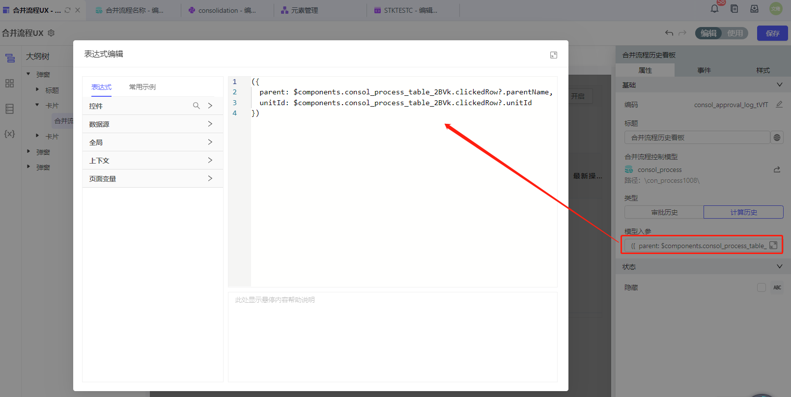 c.我们点击合并历史看板,并在「模型入参」处编辑表达式