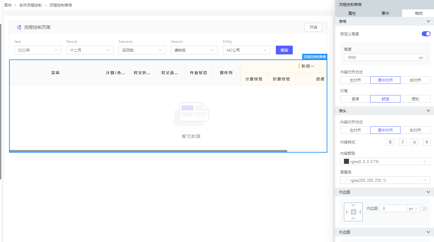 同时可以配置合并流程表格字段的显隐