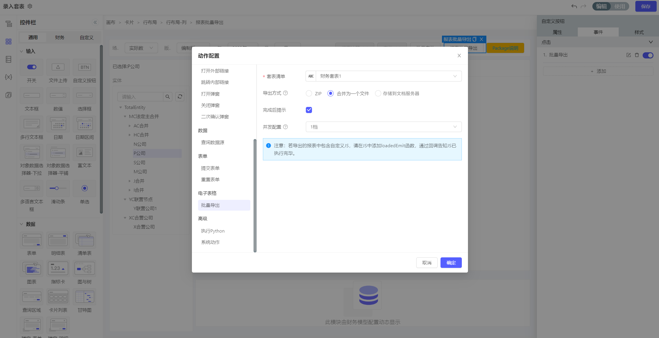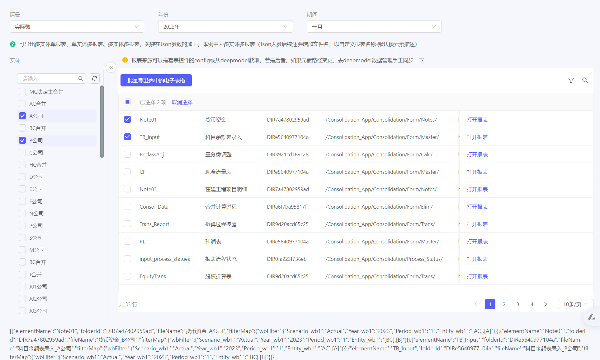若需要实现多公司多报表导出,可使用自定义JSON传参的方式