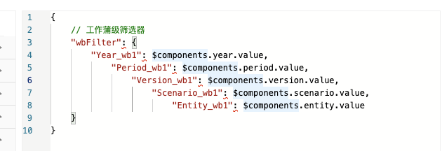 {“wbFilter”: {“Year_wb1”: {“hidden”: 1},”Period_wb1”: {“hidden”: 1},”Version_wb1”: {“hidden”: 1},”Scenario_wb2”: {“hidden”: 1},”Entity_wb1”: {“hidden”: 1}}}
