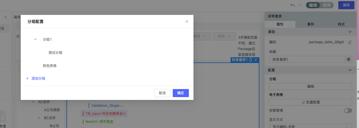 为了更便捷地管理表单,套表也支持分组树形的配置(在开启权限管理后,可继承元素权限)
