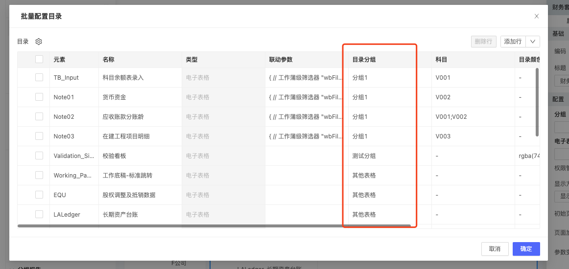 // 财务套表目录列配置