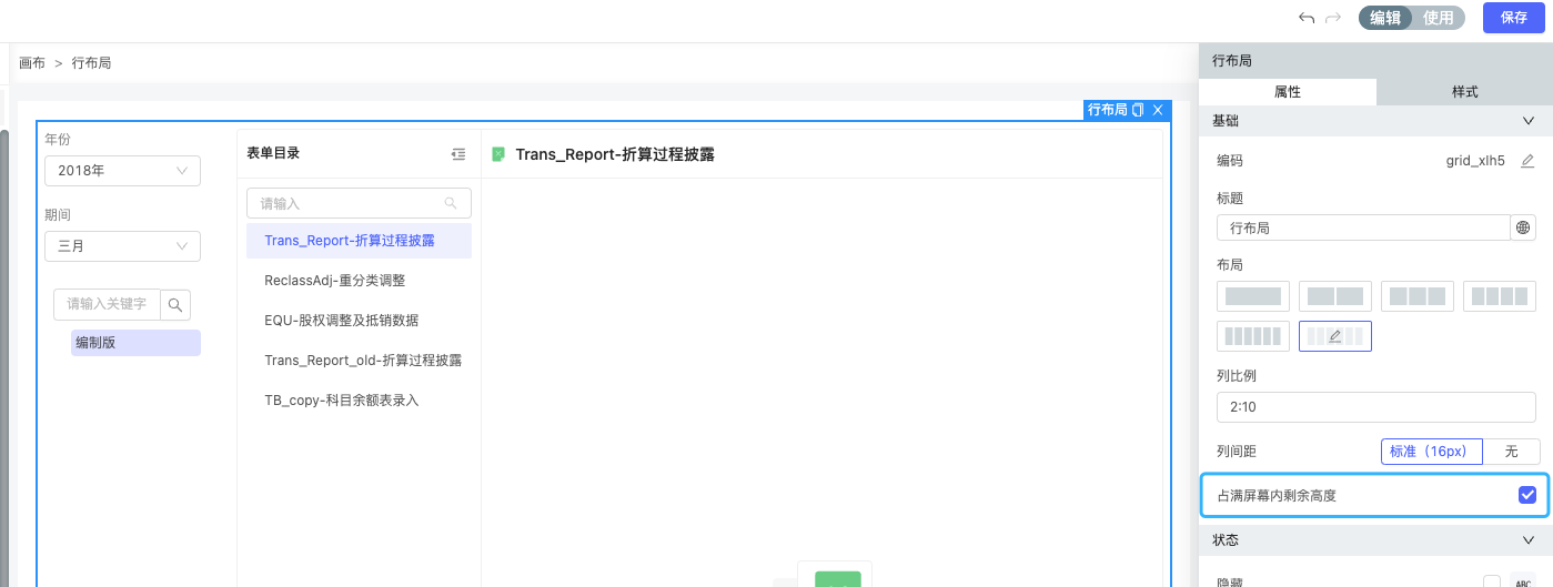 行布局勾选占满剩余高度