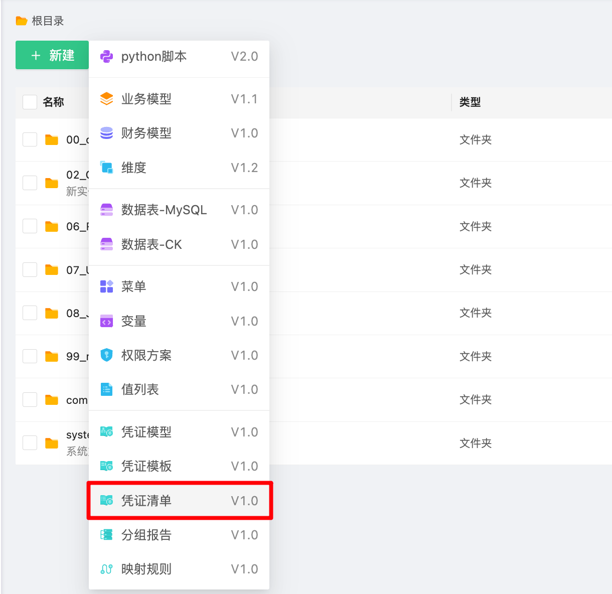 PS:允许凭证清单展示不同类型的凭证,所以无需关联凭证类型(与凭证模板不同)。