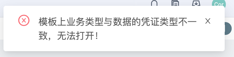 如果关系配置错误,打开凭证模板时,会报错“模板上业务类型与数据的凭证类型不一致,无法打开!”