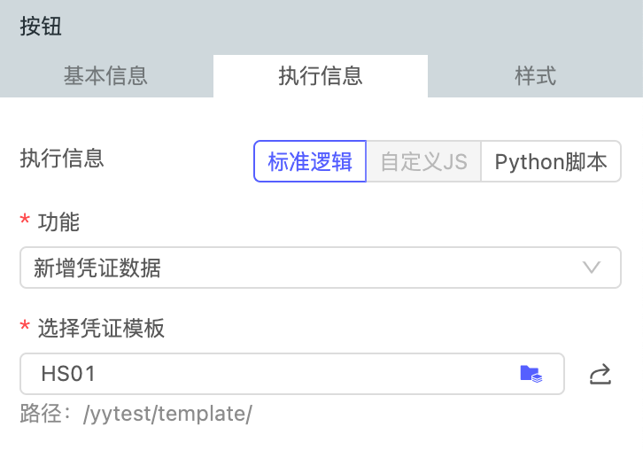 用于新增选择的凭证模板的凭证数据,点击后会打开对应凭证模板的新增数据页面。