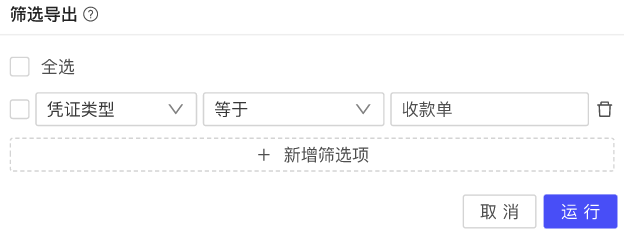 运行,则按此处的筛选条件筛选出凭证,运行导出