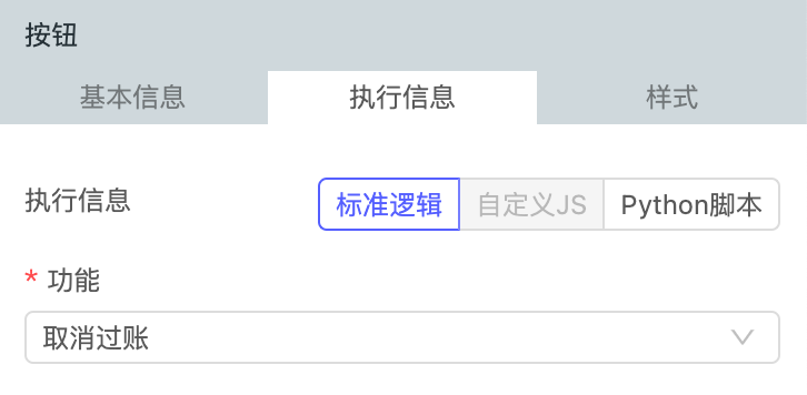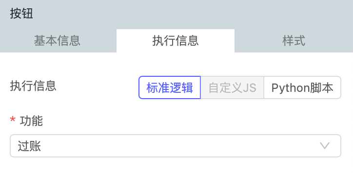 全局按钮展示在清单表标题位置,支持的标准逻辑包括:新增/过账/取消过账/校验/导出/导入