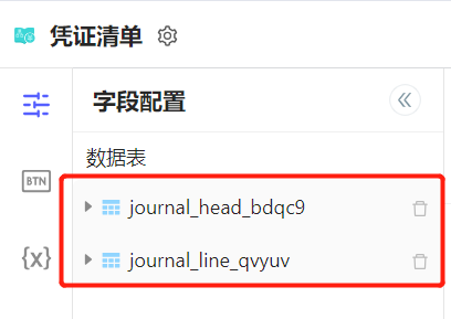 数据表仅支持凭证模型的头行表、不支持关联其他数据表