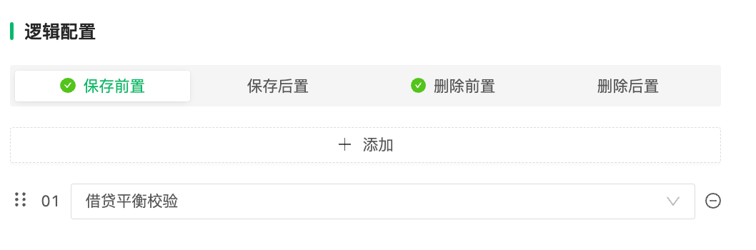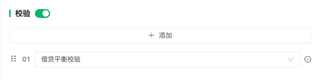 为true时,触发借贷平衡校验(例如在保存前后置配置借贷平衡校验,则在对应节点触发校验)