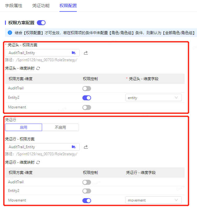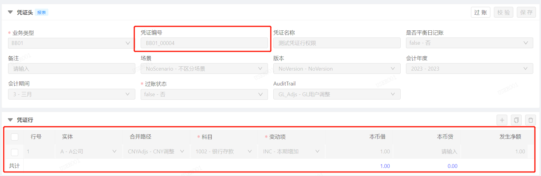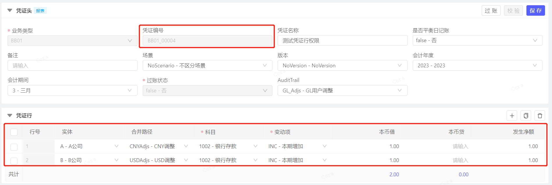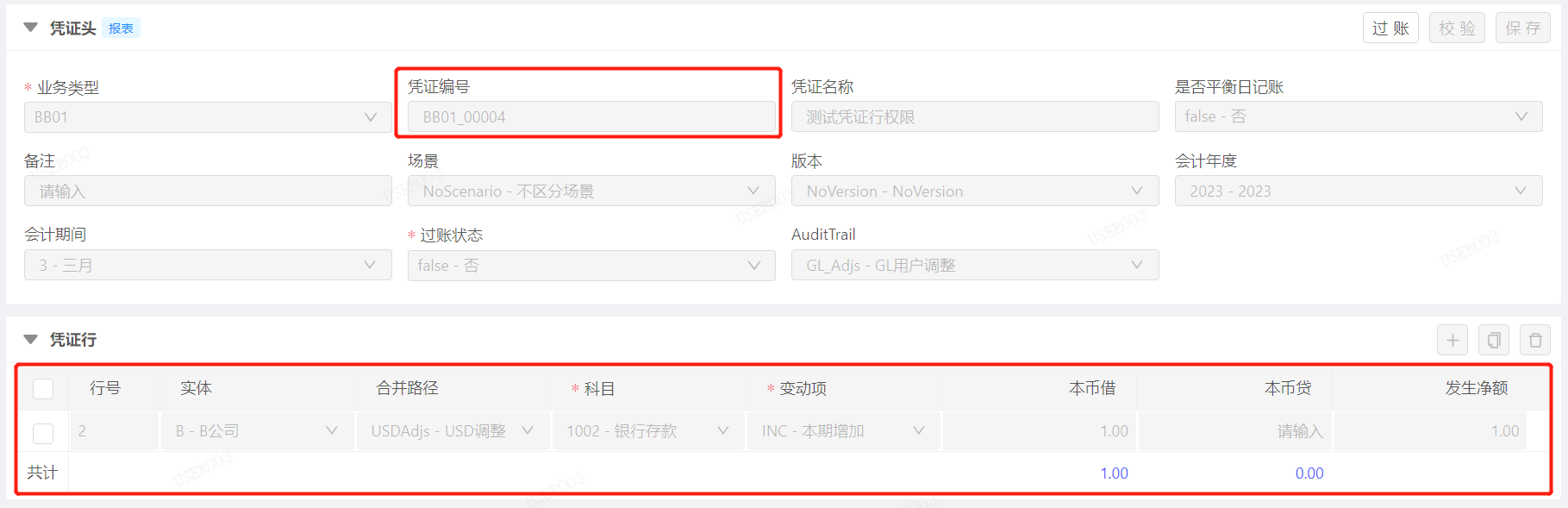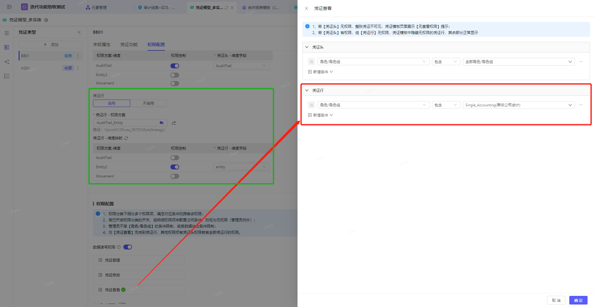 例2:多实体凭证,当用户仅有查看权限时,需要控制凭证行的查看权限