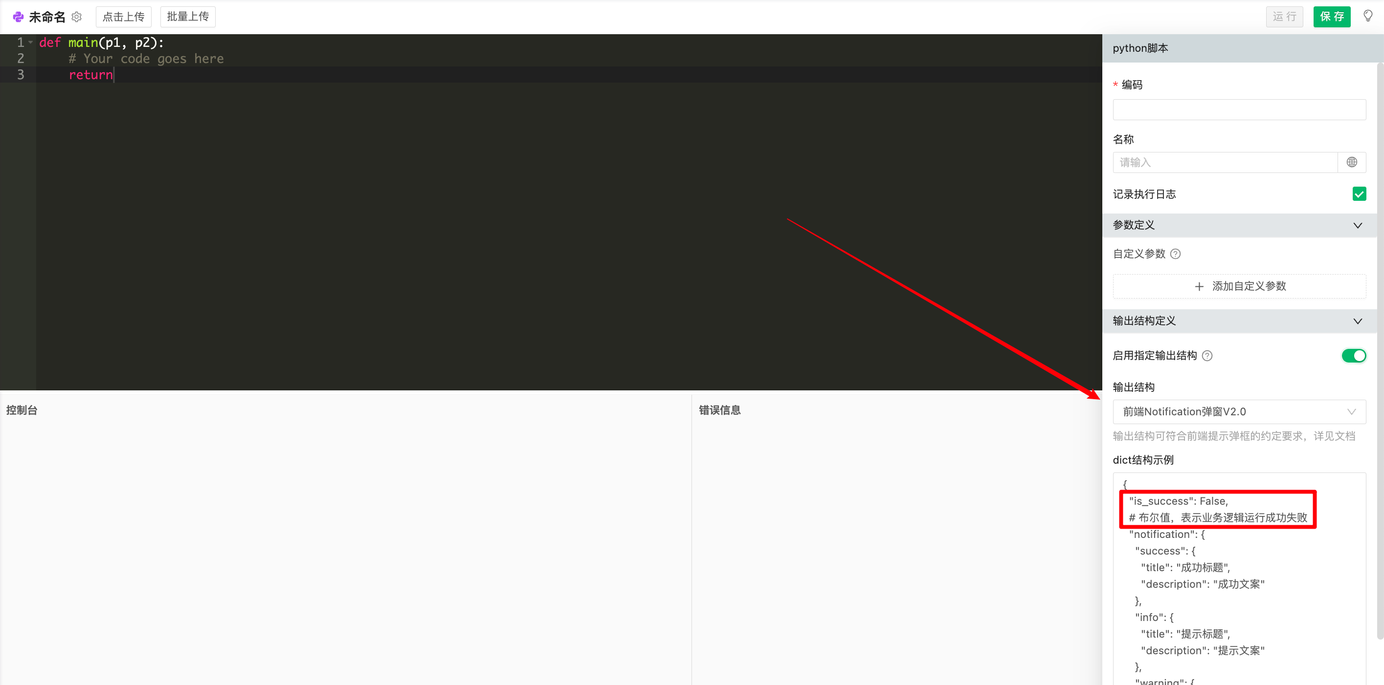 目前仅支持Python逻辑,返回格式请参考python2.0脚步返回格式V2版