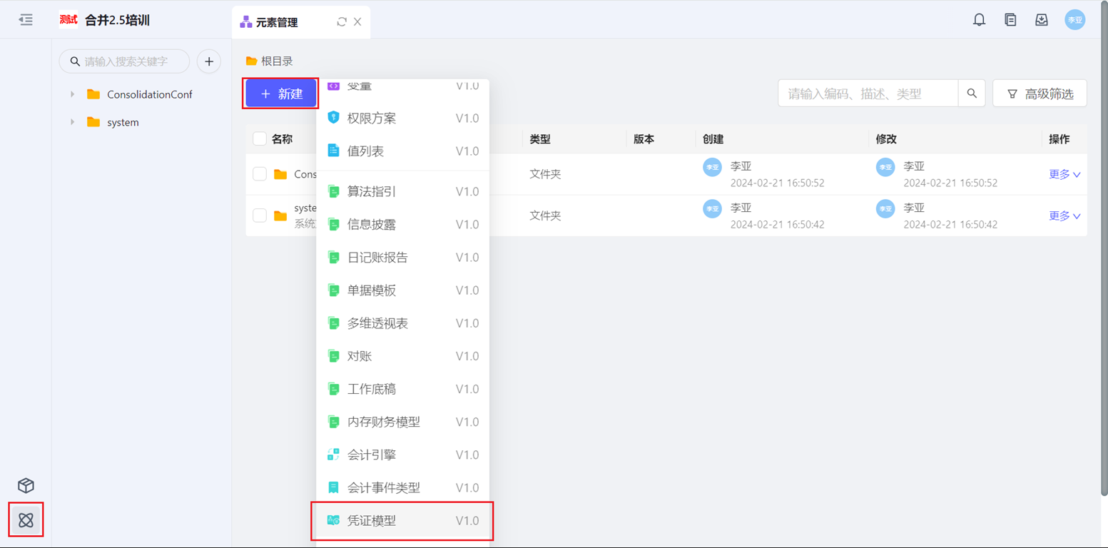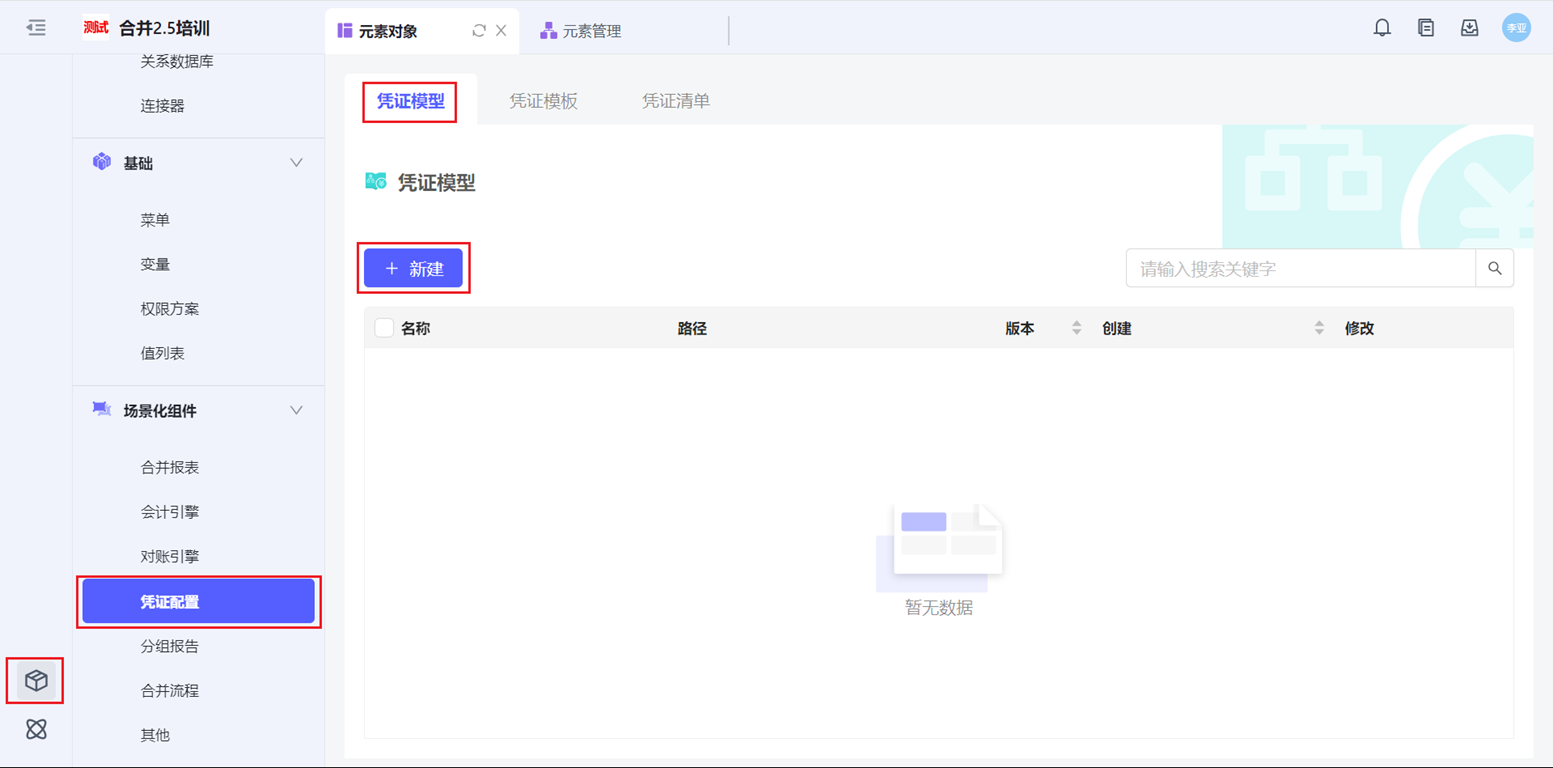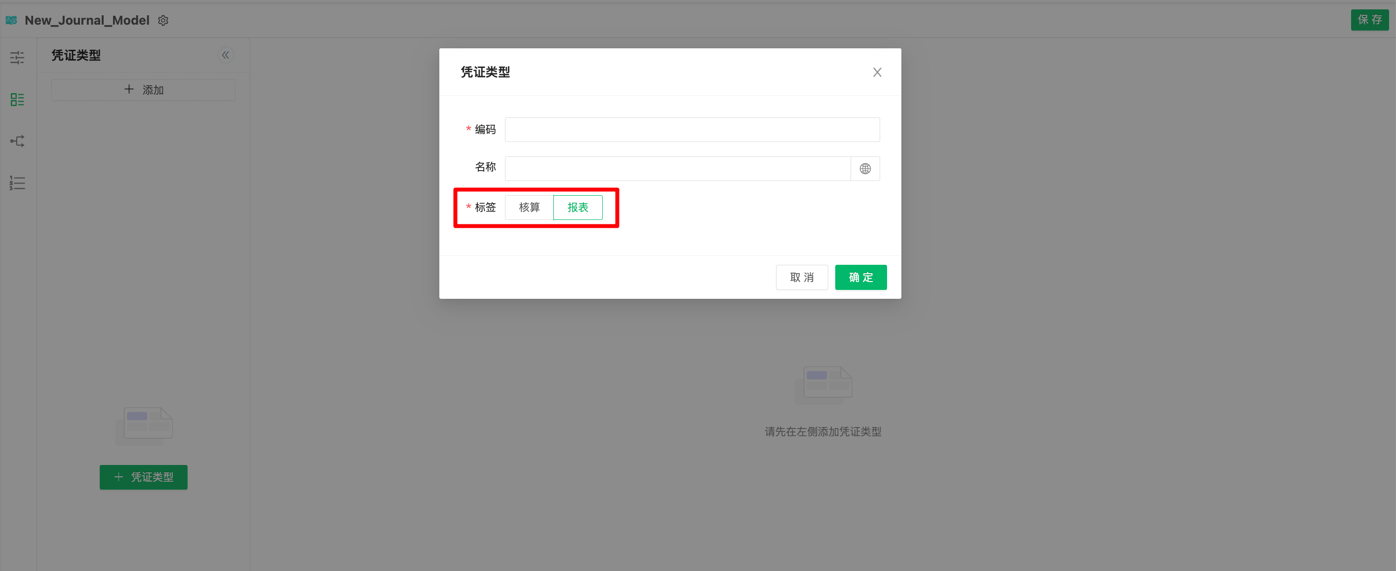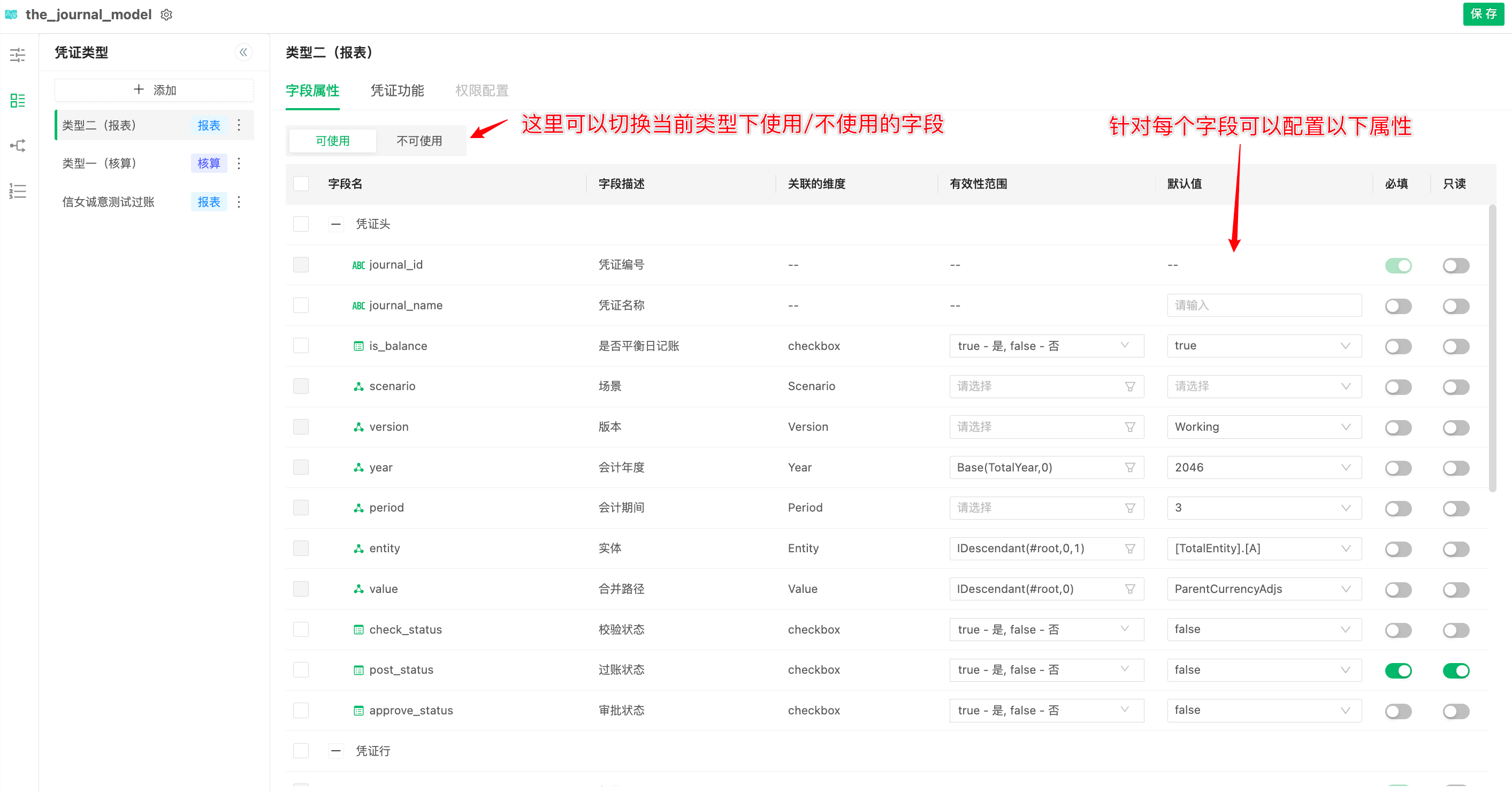 凭证模型用于定义凭证的数据结构,区分不同凭证类型配置字段属性、功能和权限。