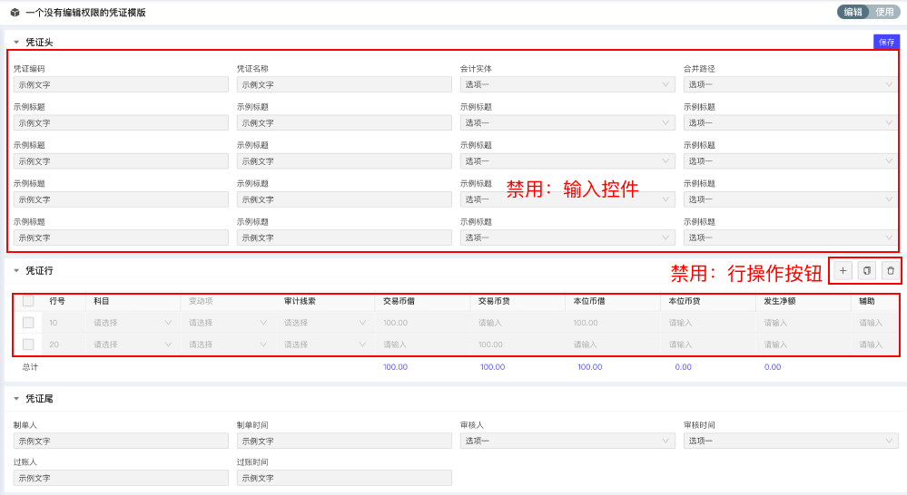 输入控件正常使用,是否禁用跟随凭证模板的字段配置 | ||