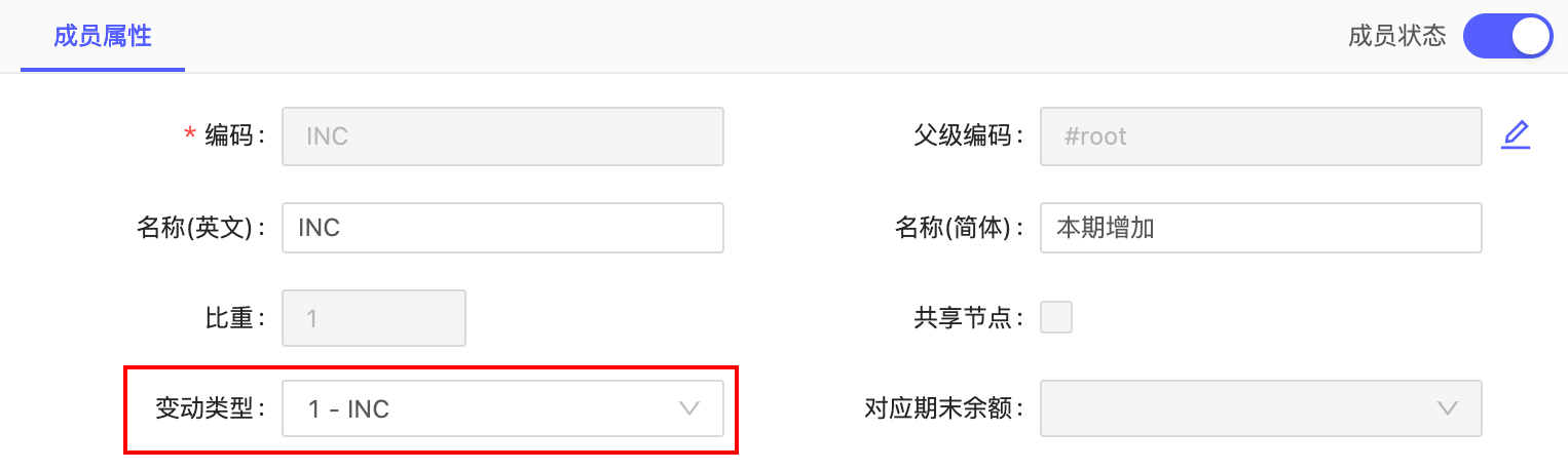 变动类型说明:凭证行字段movement-变动项关联的维度元素,其维度成员的变动类型属性