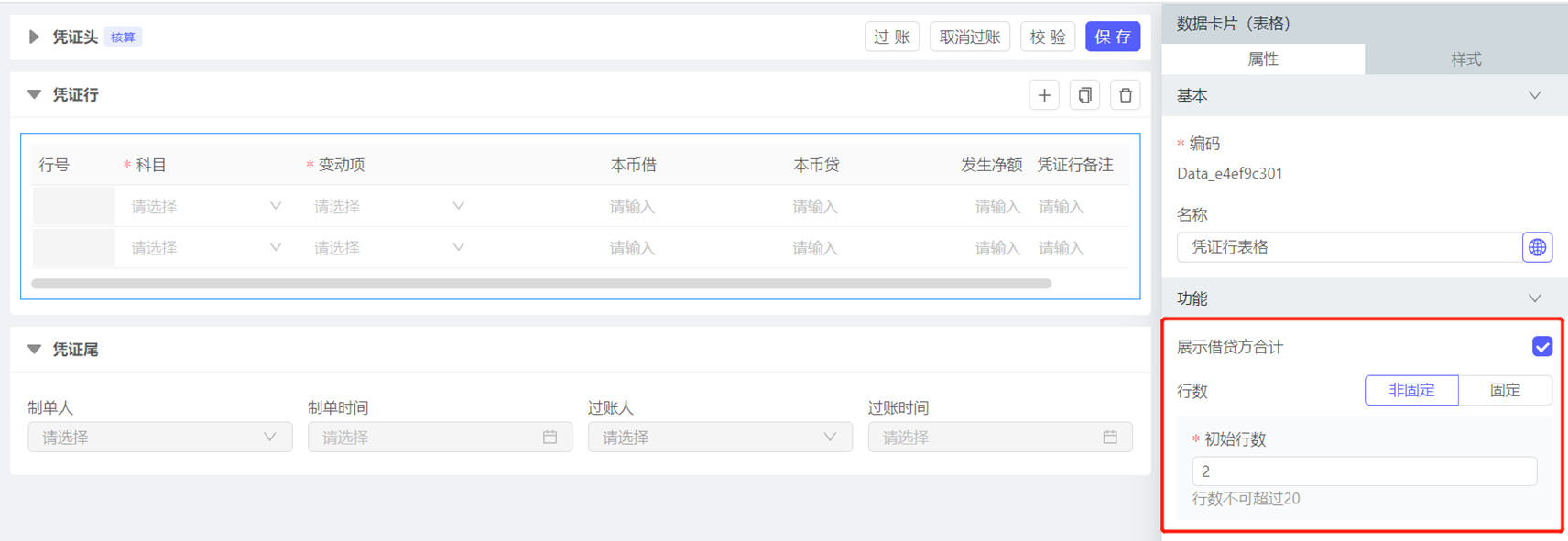 支持动态展示借贷方合计,合计数字的样式与本凭证行字段(表格列)设置的样式一致(除颜色外)