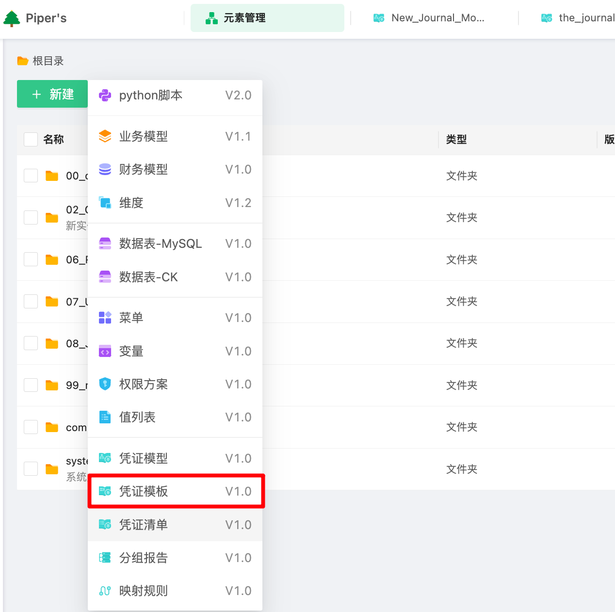 凭证模板用于定义凭证数据的展现界面,不同类型的凭证可定义不同的样式。