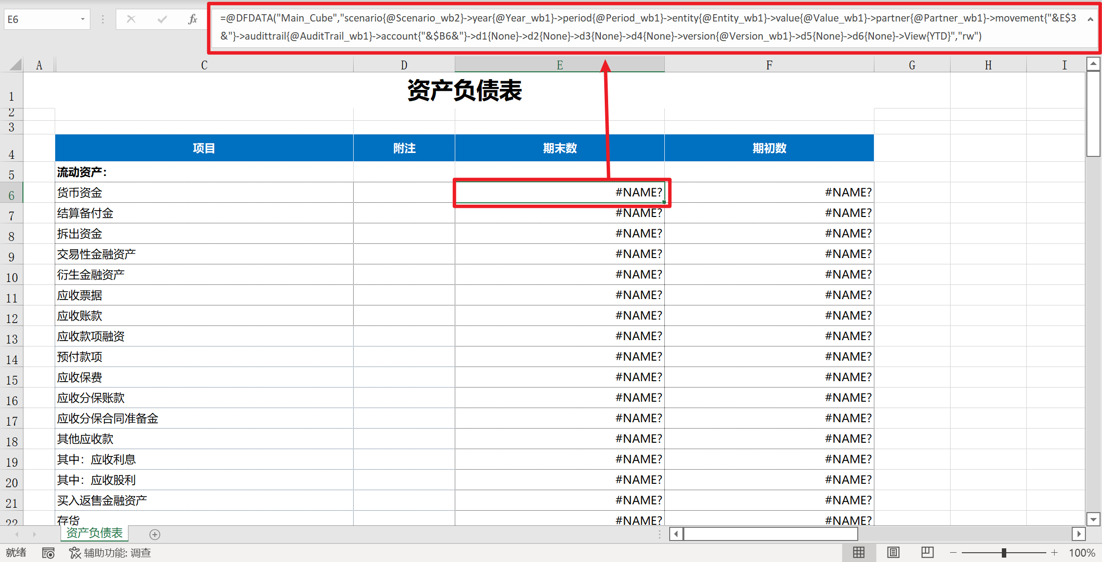 如需要从财务模型取数,可在具体的单元格上编制DF函数(先胜云自定义函数,通过公式中的维度及成员组合定位财务模型的取数视角)