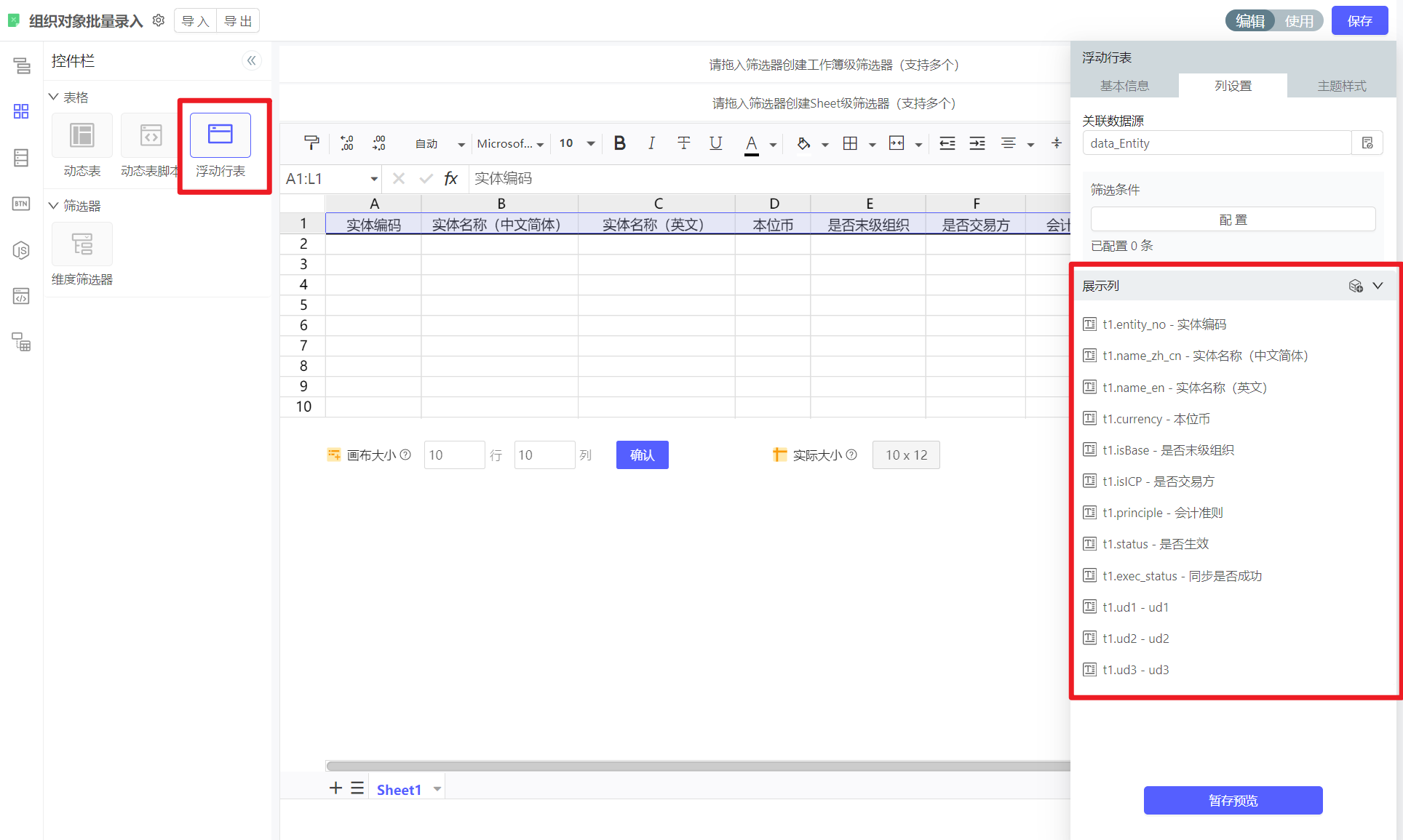 关联数据源并创建浮动表表区域
