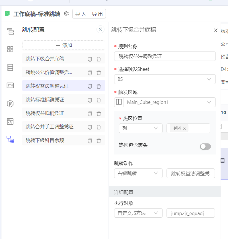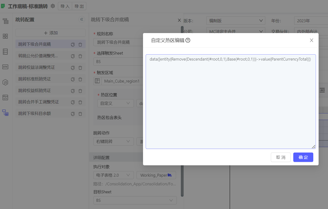 由于工作底稿是承接合并计算过程的一个全局展示方式,每一部分的细节信息需要明细报表进行支持,因此,跳转也是工作底稿一项非常重要的功能。