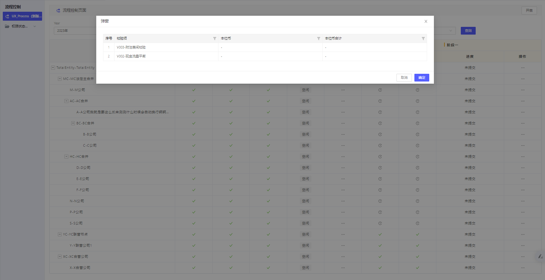 在UX合并流程的展示界面,可以查询校验结果,并弹窗展示校验明细
