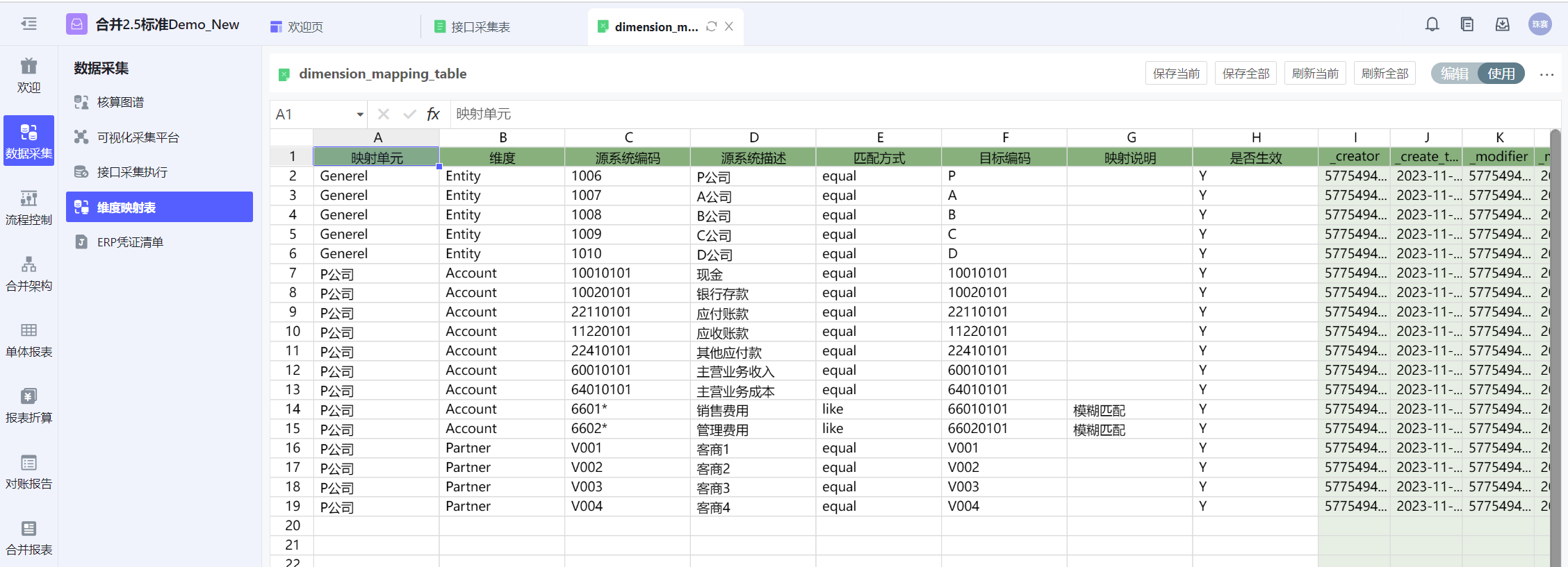 在具体的项目实施中,实施方需根据源数据的统一程度+维护映射表的工作量+影响出具报表的范围决定,综合决定采集数据还是在合并系统里手工补录数据。