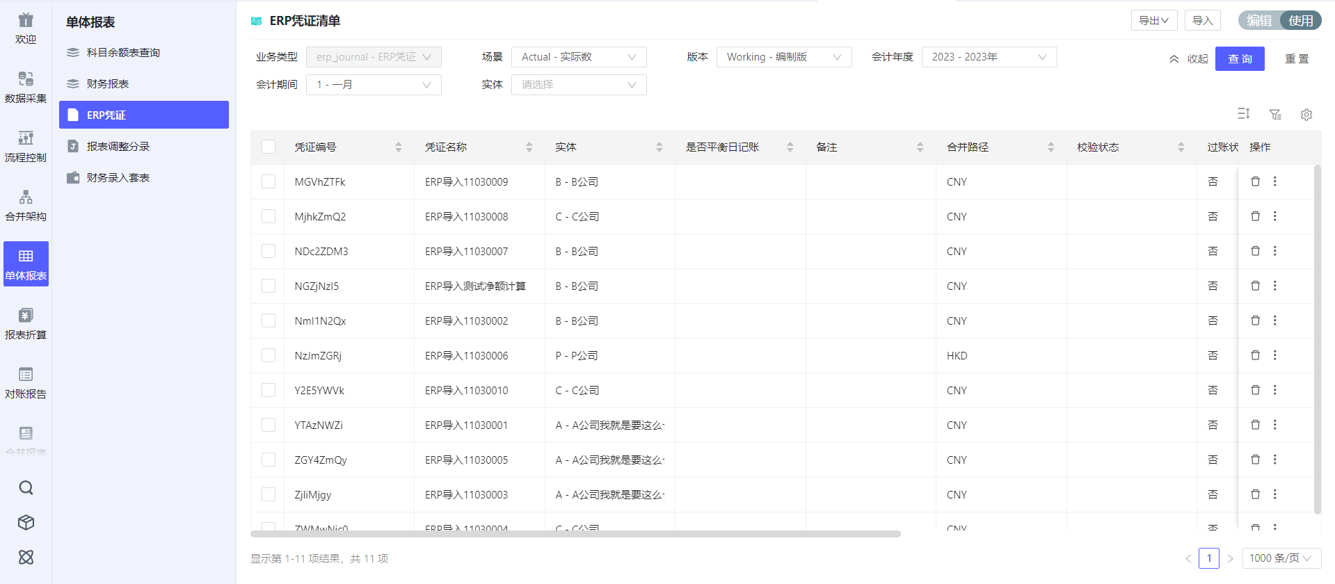 ERP凭证:如果合并系统需要支持科目余额数据穿透钻取到ERP凭证,可采集凭证信息,转化为凭证模型数据。