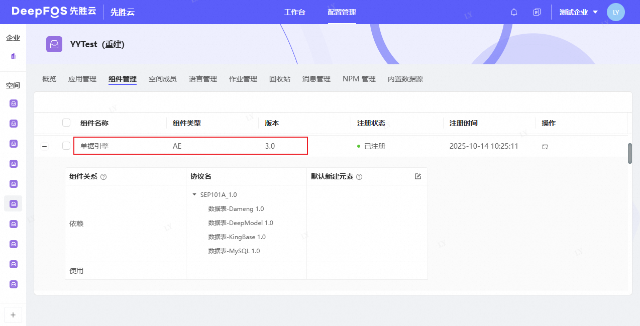 组件部署后,空间管理员可注册【单据引擎3.0】版本,组件类型【AE】(Adapt Engine):