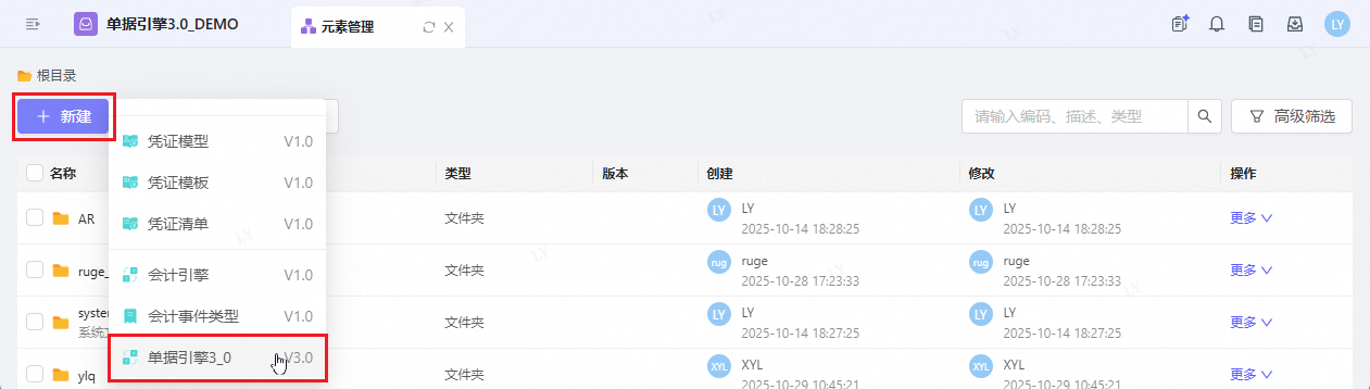 单据引擎3.0元素包含两个子类型,用于生成不同目标结构的数据,需要在新建元素时进行选择: