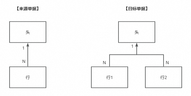 例如【来源单据】和【目标单据】的模型结构如下图所示: