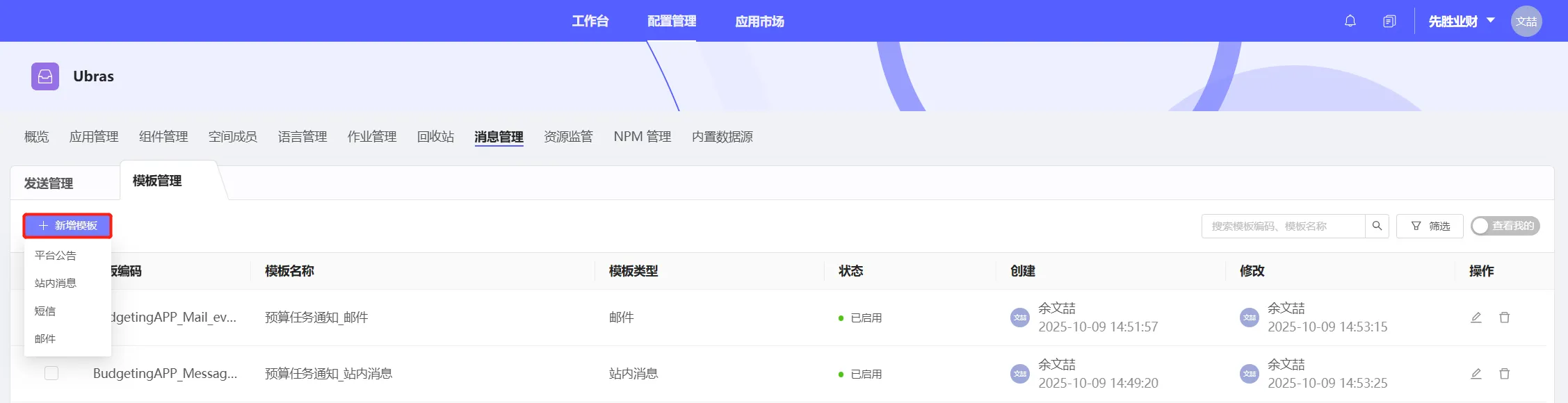解决方法:可至空间管理->消息管理->模板管理,按源空间新增模板