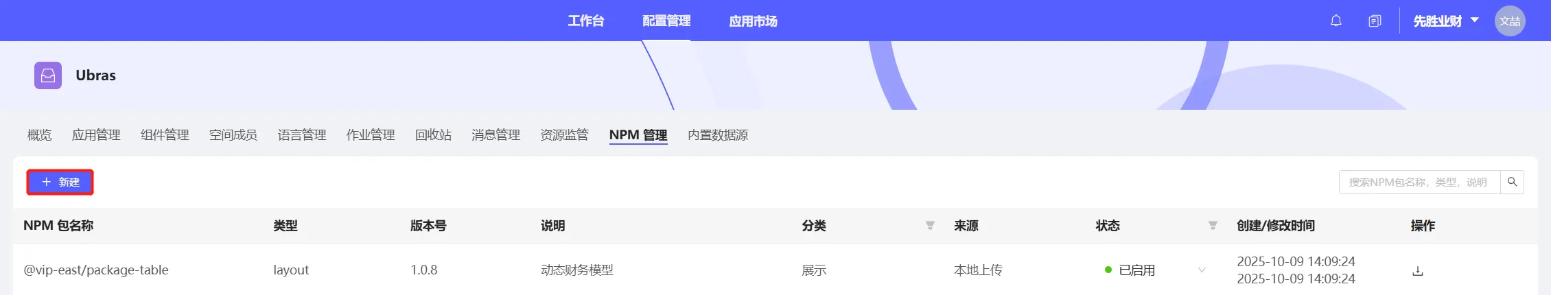 解决方法:可至空间管理->NPM管理,导入源空间相关包