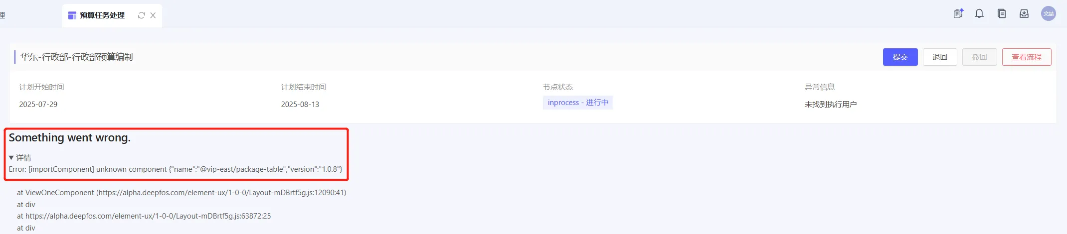 问题:打开UX,显示异常信息:Error: [importComponent] unknown component {…}