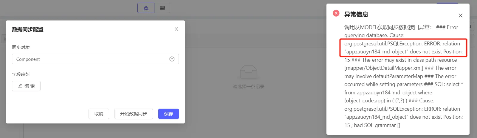 问题:打开维度->数据同步配置,点击开始同步数据,显示异常信息:ERROR: relation “appxxx_md_object” does not exist(存量维度可能有该问题)