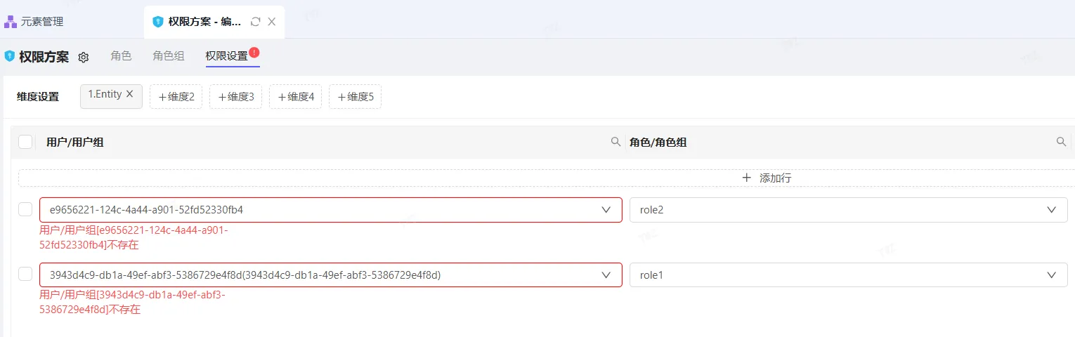 问题:打开权限方案或菜单,显示异常信息:用户或用户组不存在
