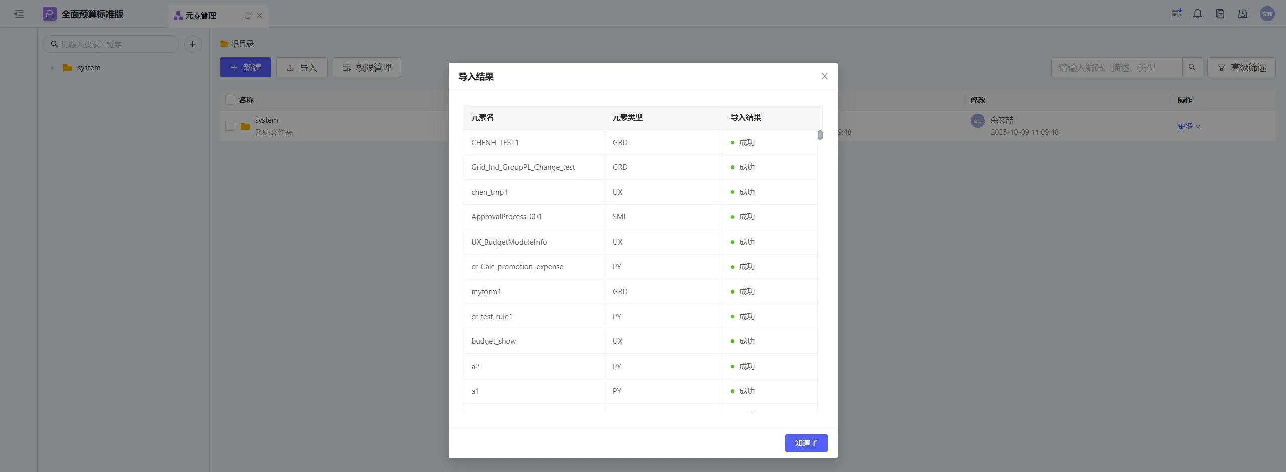 目标应用进入元素管理,上传导出文件,导入元素