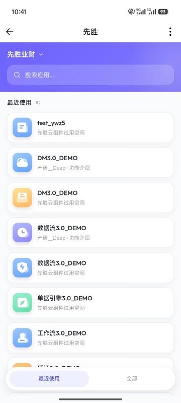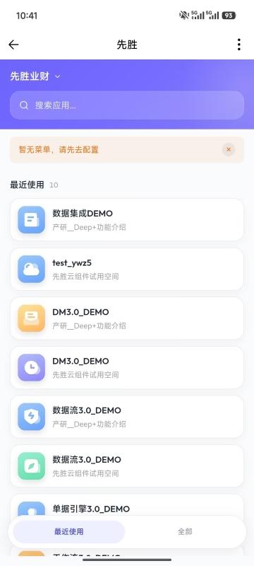 登录成功后进入工作台,可切换查看最近使用与全部应用列表