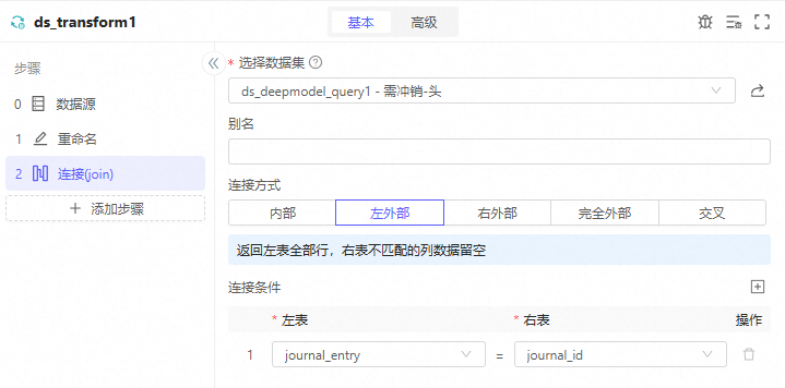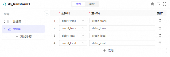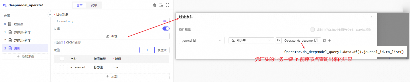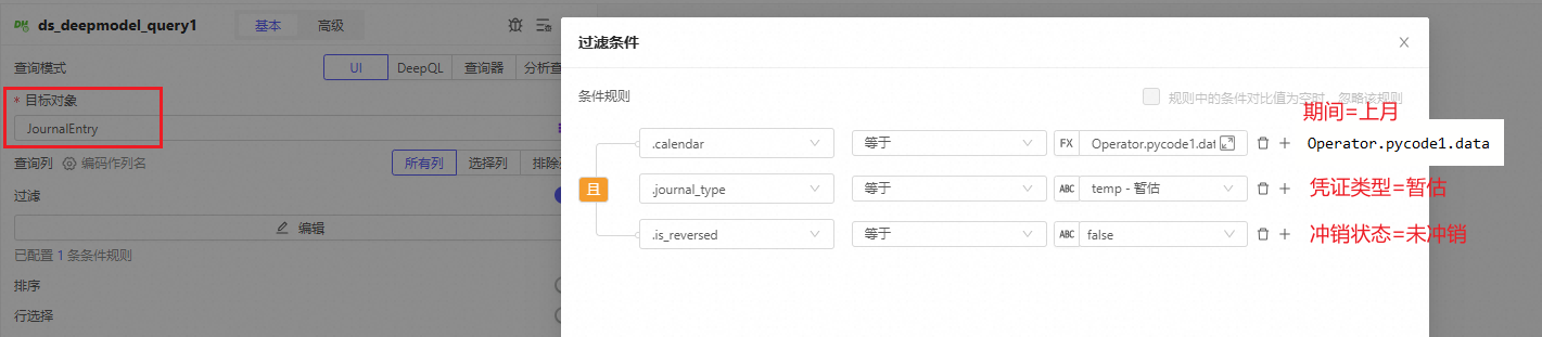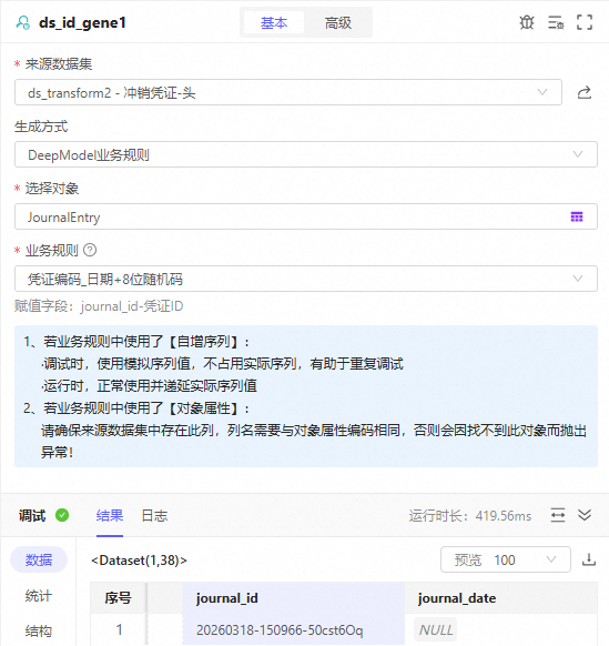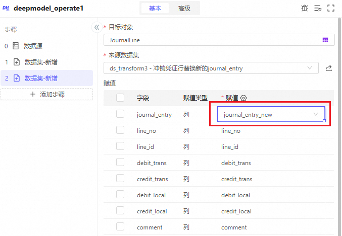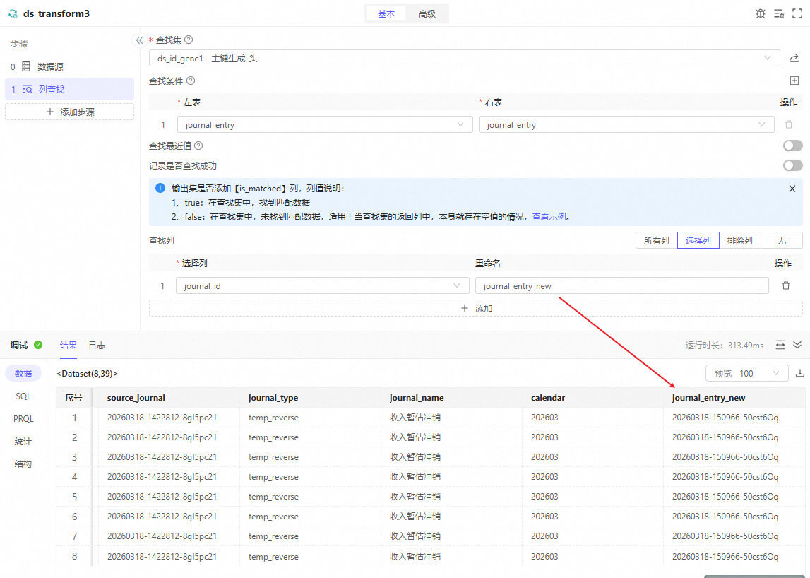 其他字段更新:用列计算实现journal_type='temp_reverse',journal_name='收入暂估冲销',calendar=Pipeline.params.calendar(在SQL中用预置变量需要先定义参数)
