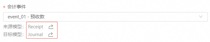 选择后,会带出此映射方案或会计事件上定义的来源和目标领域模型,点击可跳转。