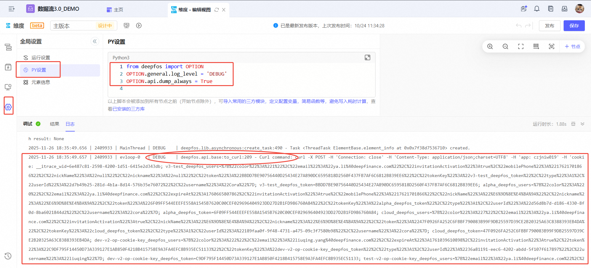 这些数据仅通过debug接口的请求也无法完全获得,需要您在公共脚本中添加一段PY代码,以在该节点的日志中获得调用组件服务的debug级别的日志,包含详细的cURL,包含提交给组件服务的详细数据,您可以排查提交的这些数据是否有误。