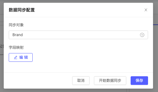 在右上角选择数据同步,选择要同步的对象,并配置映射字段。点击开始数据同步。